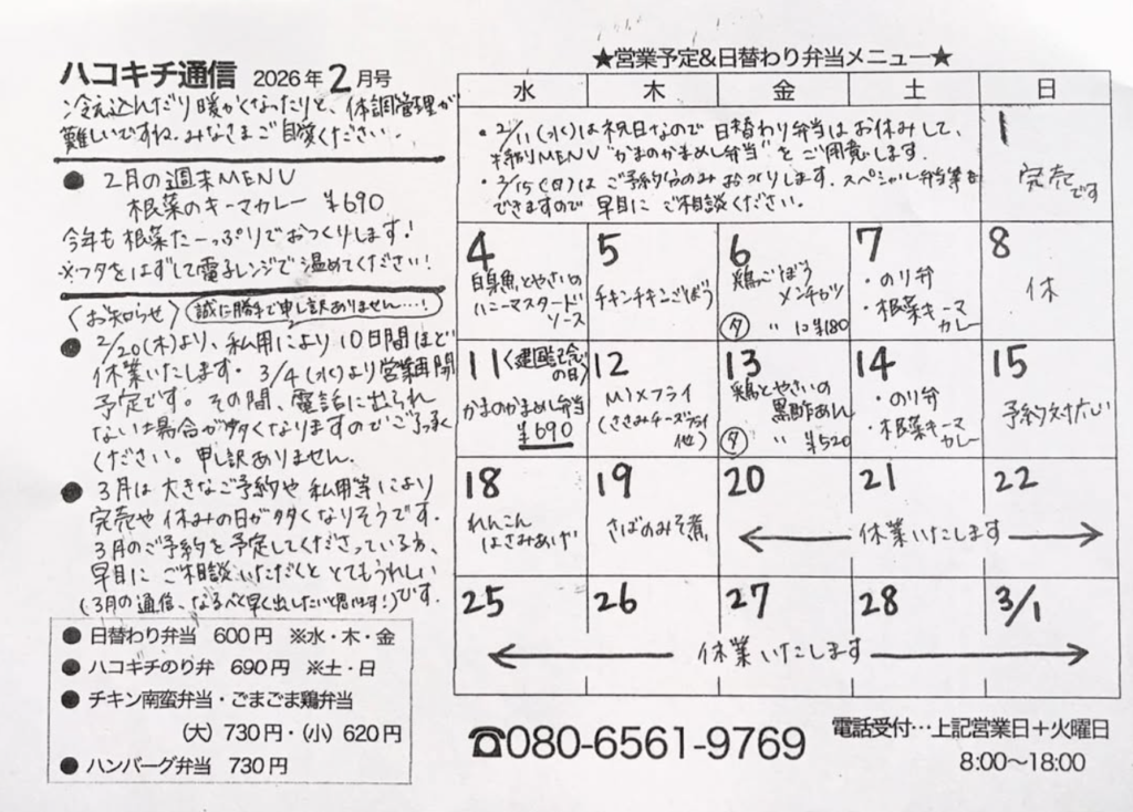 (3月もいくつか完売の日があるので、3月のメニューも早めにお渡しできたらと思っております🙇♀️)